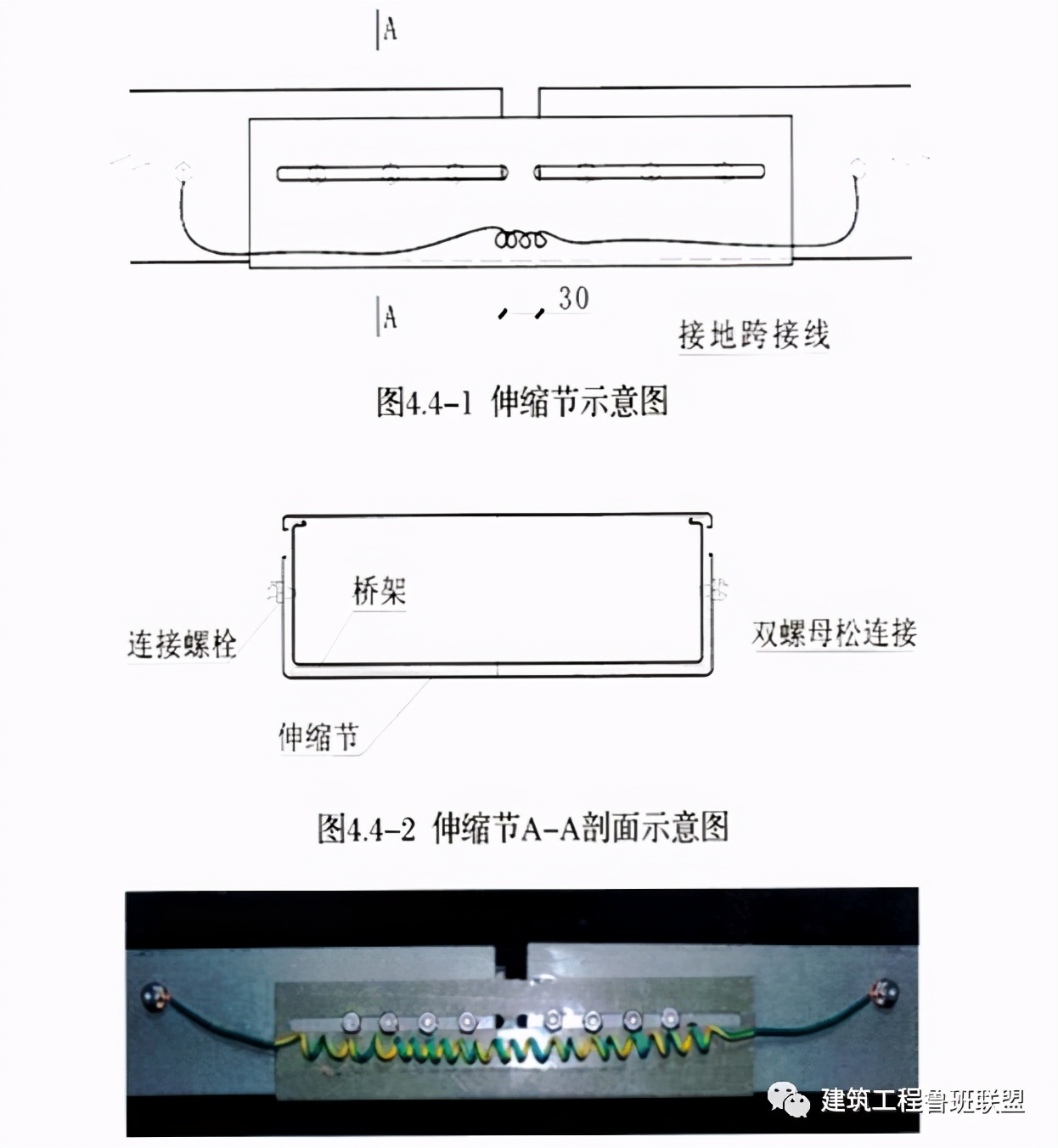 3. 镀锌梯架、托盘和槽盒本体之间不跨接保护联结导体时,连接板每端不应少于2个有防松螺帽或防松垫圈的连接固定螺栓。