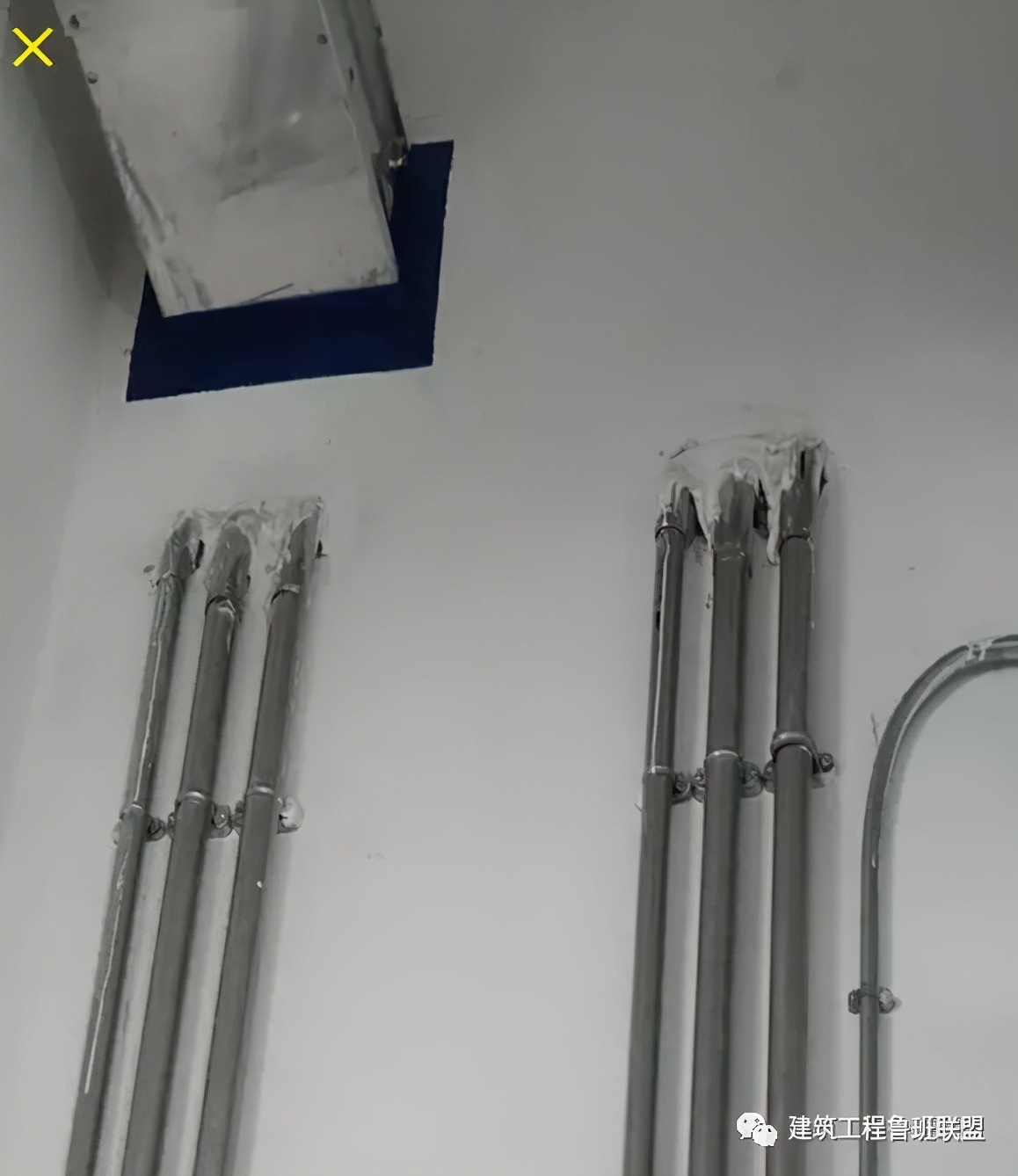 电管敷设半明半暗,与墙体体交接处粗糙。