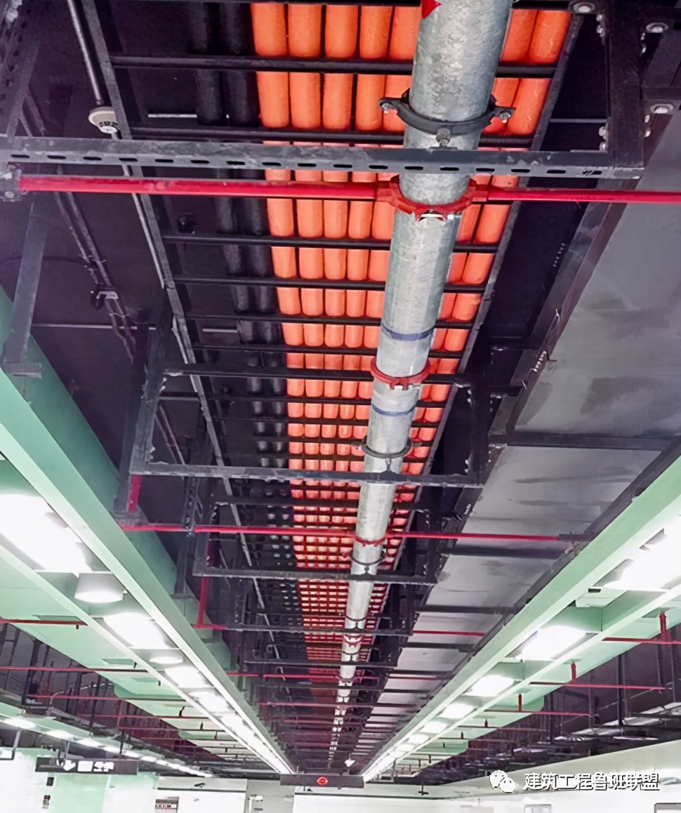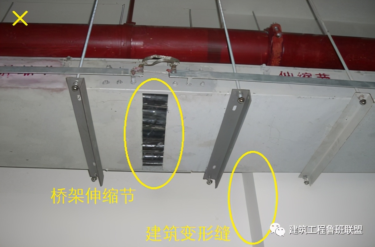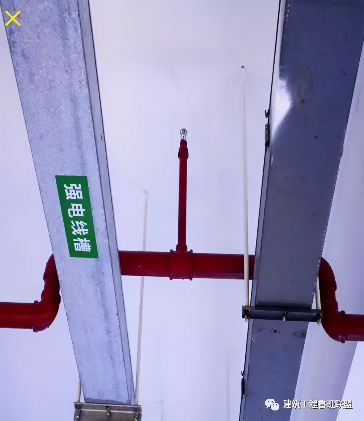 正确安装:电气桥架与喷淋头保持一定的安全距离。