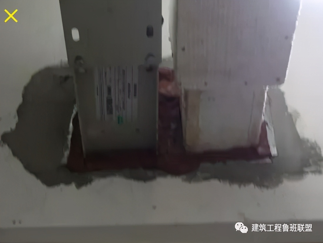 错误:连接部位一半设置在墙内,安装维修都不便,接地跨接也无法连接。