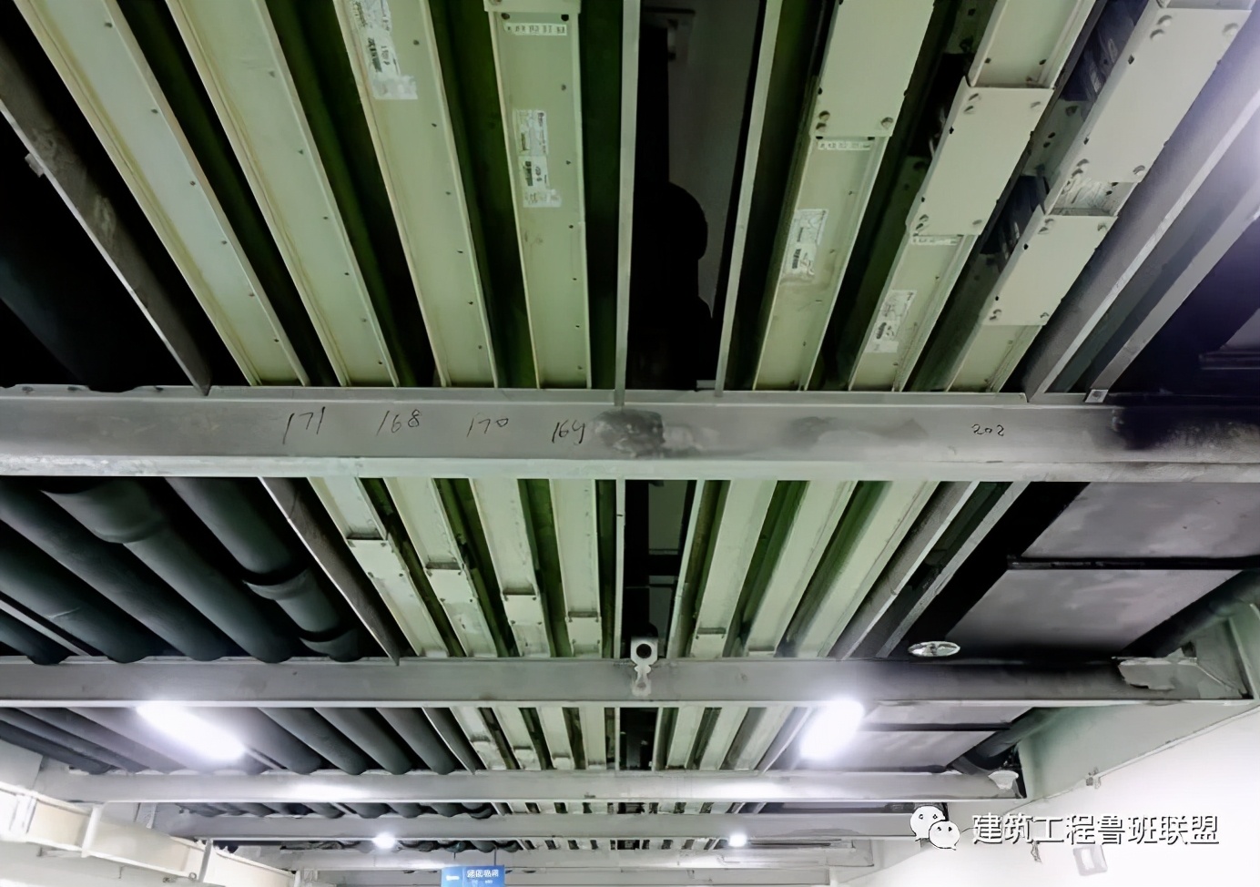 正确:垂直敷设支撑在楼板处应采取专用弹簧减震支撑,减震装置与插接母线垂直,安装应牢固。穿越楼板防火封堵措施到位。