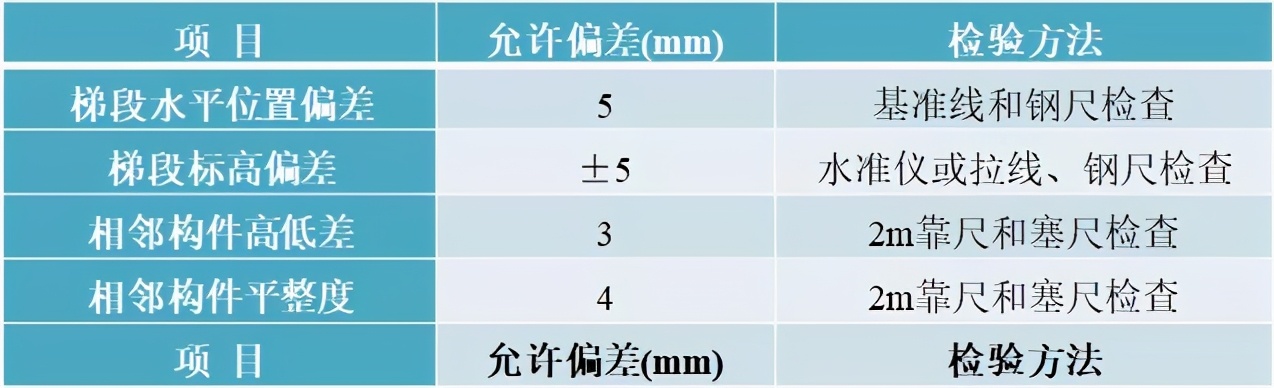 1、楼梯吊装完成后需进行安装质量进行检查验收,安装的允许偏差应符合下表的规定。
