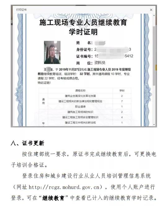 3、换发电子证书。登录住建部“住房和城乡建设行业从业人员培训管理信息系统”按提示进行操作,系统将自动完成“电子证书”换发。