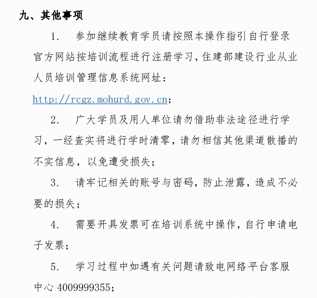 (四)不断提高继续教育工作水平。省级住房和城乡建设主管部门要制定施工现场专业人员继续教育工作方案,加强监管,制定相应措施办法,做好学时认定工作。各地继续教育工作方案要报我部(人事司)。我部(人事司)将不定期对相关数据进行抽查。因受新冠肺炎疫情影响,原持有《住房城乡建设领域专业人员岗位培训考核合格证书》的人员进行继续教育,换发培训合格证截止时间延迟到2021年9月30日。