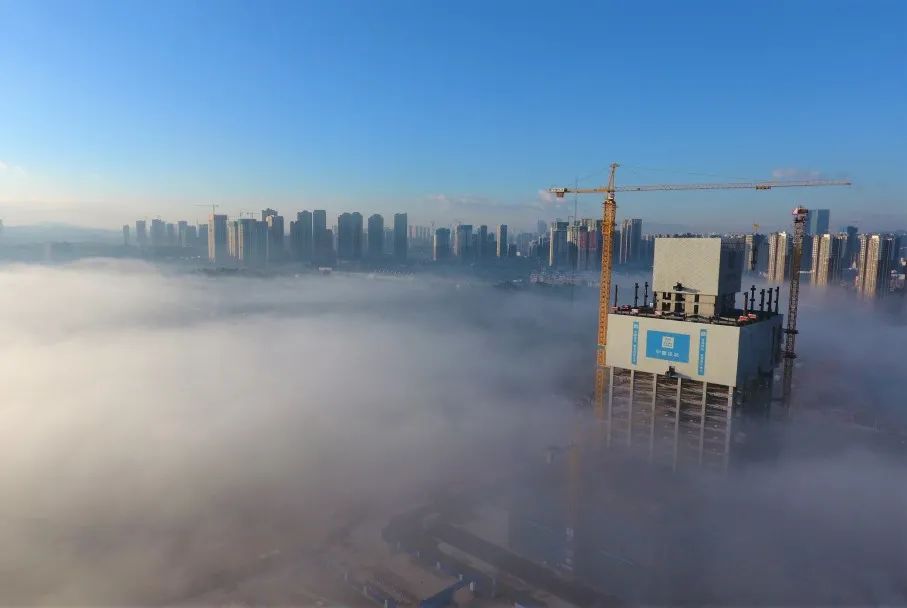 项目部打破常规。宏观上,在对角线高低塔吊配合下,核心筒先行,钢结构紧随,楼层见缝插“板”,芝麻开花般逐渐形成节节向上之势。在施工细节上,项目创新提出双流水施工作业法,即在垂直和水平两个方向,同时展开流水施工作业。
