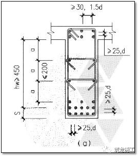 16、梁侧腰筋设置,应按梁腹板高度(即梁高减去板厚)减去梁底保护层后进行计算设置。