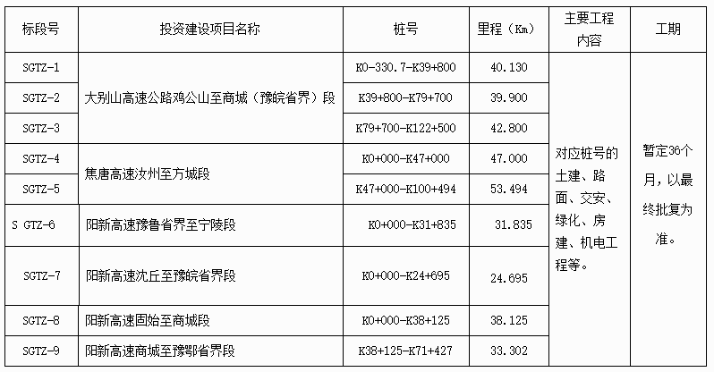 河南交通投资集团有限公司高速公路“13445工程”第一批切块项目投资建设合作单位