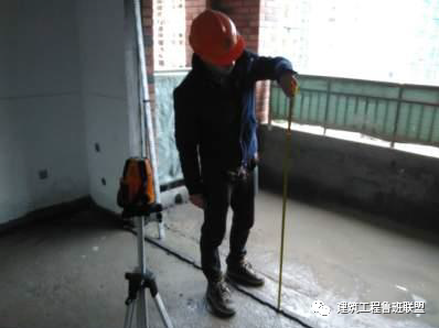 【工序重点】如发现标高不准确的现象,应该对不合格的冲筋进行重新处理,以防后期找平结束后整体地面标高过高或过低。