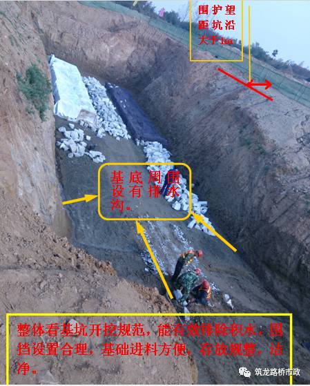 7 当基坑有渗水时,应在坑底基础砌体范围外周边挖排水沟和集水井,配备抽水机及时抽水。