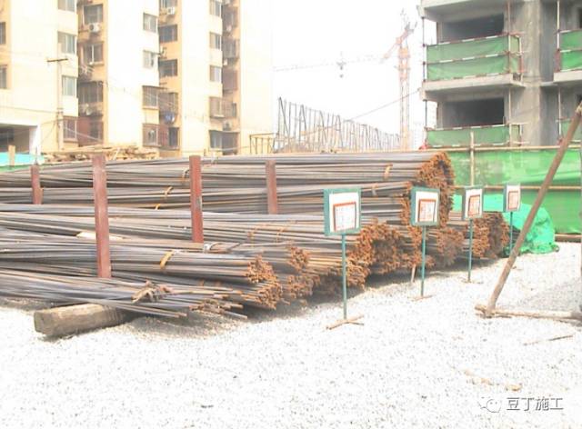 2)应按级别、品种、直径、厂家分垛码放,并挂标识牌,注明产地、规格、品种、数量、质量检验状态(待检、合格、不合格);