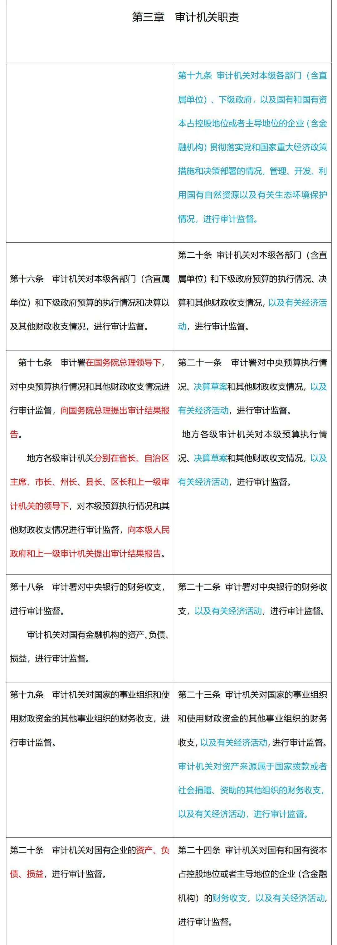 现行审计法共54条,此次修改了49条(修改后减少1条),新增14条,修订后共67条。并于2019年3月15日至4月15日向社会公布征求意见。