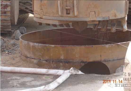 ③如用上述方法处治,坍孔仍不停时,或坍孔部位较深,宜将导管、钢筋笼拔出,回填粘土,重新钻孔。