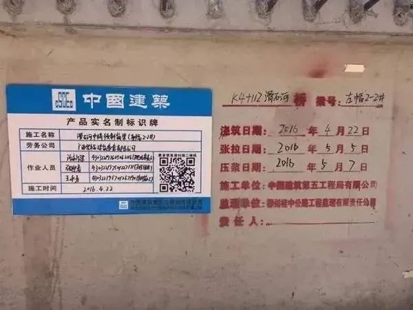 可能工程竣工后的几年或是十几年后,施工时的纸质施工记录会不复存在,但是埋在混凝土里的或是刻印在钢结构上的印迹是不会消失的,这样更便于追溯;再比如混凝土结构,在施工时可能会遇上不适宜浇筑的天气情况。例如:调制好的塌落度正适宜浇筑,可天气突变下起了大雨;如果日后混凝土结构出现质量问题,我们在标识牌上便可查处浇筑砼时可能受到雨水的影响导致的质量问题,这样也可以给后续的质量问题分析提供客观的支持。