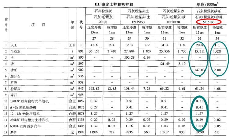 2、场内运输及操作损耗:材料消耗定额中考虑,其定额值“场内运输及操作损耗”是以百分率形式在《预算定额》附录四中体现。材料消耗定额:在节约和合理使用材料的条件下,生产单位合格产品所必须消耗的一定品种规格的材料、半成品、配件、水、电、燃料等数量标准,包括材料的净用量和必要的工艺性损耗及废料数量。计量单位以材料的实物量单位表示,如t、kg、m3。材料消耗定额=(1+材料场内运输及操作损耗率)*完成单位产品的材料净消耗32.5级水泥=0.406*(1+1%)*10=4.101t