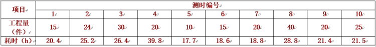 4、章(节)说明:概算上册:路基工程、路面工程、隧道工程和涵洞工程。下册:桥梁工程、交通工程及沿线设施、临时工程。预算上册:路基工程、路面工程、隧道工程和桥涵工程的第一节至第六节。下册:桥涵工程第七节至第十一节、防护工程、交通工程及沿线设施、临时工程、材料采集及加工、材料运输;路面材料计算基础数据,基本定额,材料周转及摊销,定额基价、人工、材料单位质量、单价表。(2)确定定额编号:【页-表-栏】【23-1-1-14-1】、【表-栏】【1-1-14-1】、数码式10114001(3)阅读说明:1、确定定额表号是否有误。例如:浆砌块石护拱、浆砌块石护坡两者预算表号分别为【442-4-5-3-2】和【741-5-1-10-3】。2、确定定额值。(4)定额抽换:当设计内容或实际工作内容与定额表中规定的内容不完全相符时,应根据“说明”及“注”的规定调整定额值,即定额抽换。定义:在正常的生产技术和生产组织条件下,为生产或完成一定量合格的产品或工作所规定的劳动量消耗标准。在技术条件正常、生产工具使用合理和劳动组织正确的条件下,工人为生产合格产品消耗的劳动时间。包括准备时间、结束时间、基本生产时间、辅助时间,不可避免的中断时间以及工人必须休息的时间。时间定额以工日为单位,1工日相当于1个工人工作8h的劳动量。用测时法进行人工挖基坑土方定额的测定,现场测定情况如下表1。假定基坑体积为75m3,清理整修坑底、坑壁体积为36m3,运土体积为回填后多余的土体,体积为32m3,不考虑运土便道。据经验,估计非工作耗时(指准备工作时间、合理中断时间和休息及结束整理时间)占定额时间的15%。问:请用上述资料计算人工挖基坑土方的劳动定额,定额单位取10m3。工作内容为:人工挖、装基坑土方并运出坑外:20m内弃土,清理基底、坑壁。挖土出坑基本时间消耗=(7*446+11*285+6*262+8*368)/(27+24.1+13.5+25.2)=119.967(min/m3)挖土出坑定额时间消耗:119.967/0.85=141.138(min/ m3)计算清理整修坑底、坑壁基本时间消耗=(7*25+5*26+6*28+4*20)/(35+25+30+15)=5.267(min/ m3)计算清理整修坑底、坑壁定额时间消耗=5.267/0.85=6.196(min/ m3)计算手运土基本时间消耗=(7*110+8*120+6*121+4*128)/(19.8+25.9+18.7+13.4)=38.149(min/ m3)手推车运土定额时间消耗=38.149/0.85=44.881(min/ m3)挖基坑定额时间=141.138*75+6.196*36+44.881*32=12244.598(min/ m3)挖基坑的劳动定额=12244.598/60/8/75*10=3.401(工日/10m3)用工作量写实法,确定自卸汽车运输路基土方(装载机装车)的机械定额。已知各项基础参数如下表所示:问:1、假定时间利用系数为0.9,请问其循环工作时间和台班循环数是多少?2、假定自卸汽车的车箱容积为8m3,每天施工12h,每天准备机具和保养等消耗的时间为10min,试计算每1000m3时间定额。答:1、循环工作时间=装车+卸车+调位+等待+运行所消耗的时间之和,即为:3.305+1.325+1.250+1.000+11.952+10.676=29.508(min)台班循环次数=台班工作时间*时间利用系数/循环工作时间,即:每天施工12h,自卸汽车循环次数=(12*60-10)*0.9/29.508=21.655(次)每天施工完成土方数量=21.655*8=173.241(m3)时间定额=12/8/173.241*1000=8.658(台班/1000m3)工作日写实法测算某项工作的测时数据表