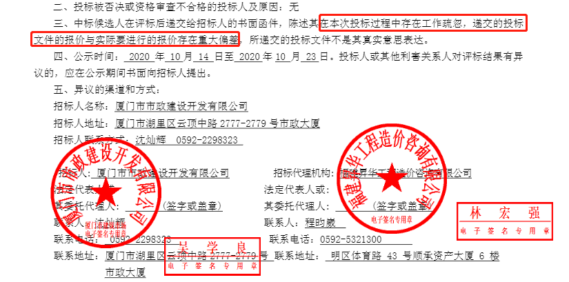 A标段中标候选人在本次投标过程中存在工作疏忽,递交的投标文件的报价与实际要进行的报价存在重大偏差,导致了中标价比招标控制价相差十万八千里的乌龙事件,并直接导致该重点工程建设进展延滞,被列入厦门市建筑市场“黑名单”。(此前报道:乌龙!厦门一项目招标控制价4.8亿,中标价仅为485万)