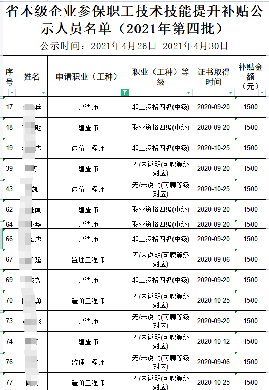 在济南3月份补贴名单中,1753名建造师拿到补贴:2000元(659人)、1500元(1090人)、1000元(4人)