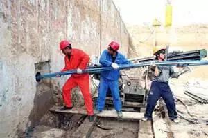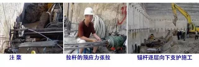 是在未开挖的土层立壁上钻孔至设计深度,孔内放入拉杆,灌入水泥砂浆与土层结合成抗拉力强的锚杆,锚杆一端固定在坑壁结构上,另一端锚固在土层中,将立壁土体侧压力传至深部的稳定土层。