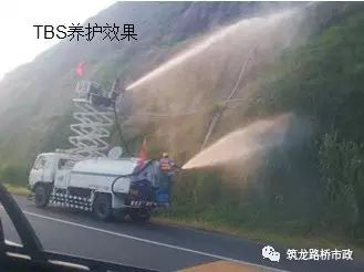 4)养护:喷播1~2天后开始养护,养护初期应让坡面保持湿润状态,初期养护时间为45~60天,以每天浇水为主,早晚各一次。待草长到10cm以上时靠自然降水,但如果连续高温干旱时间超过5天,应安排浇水。