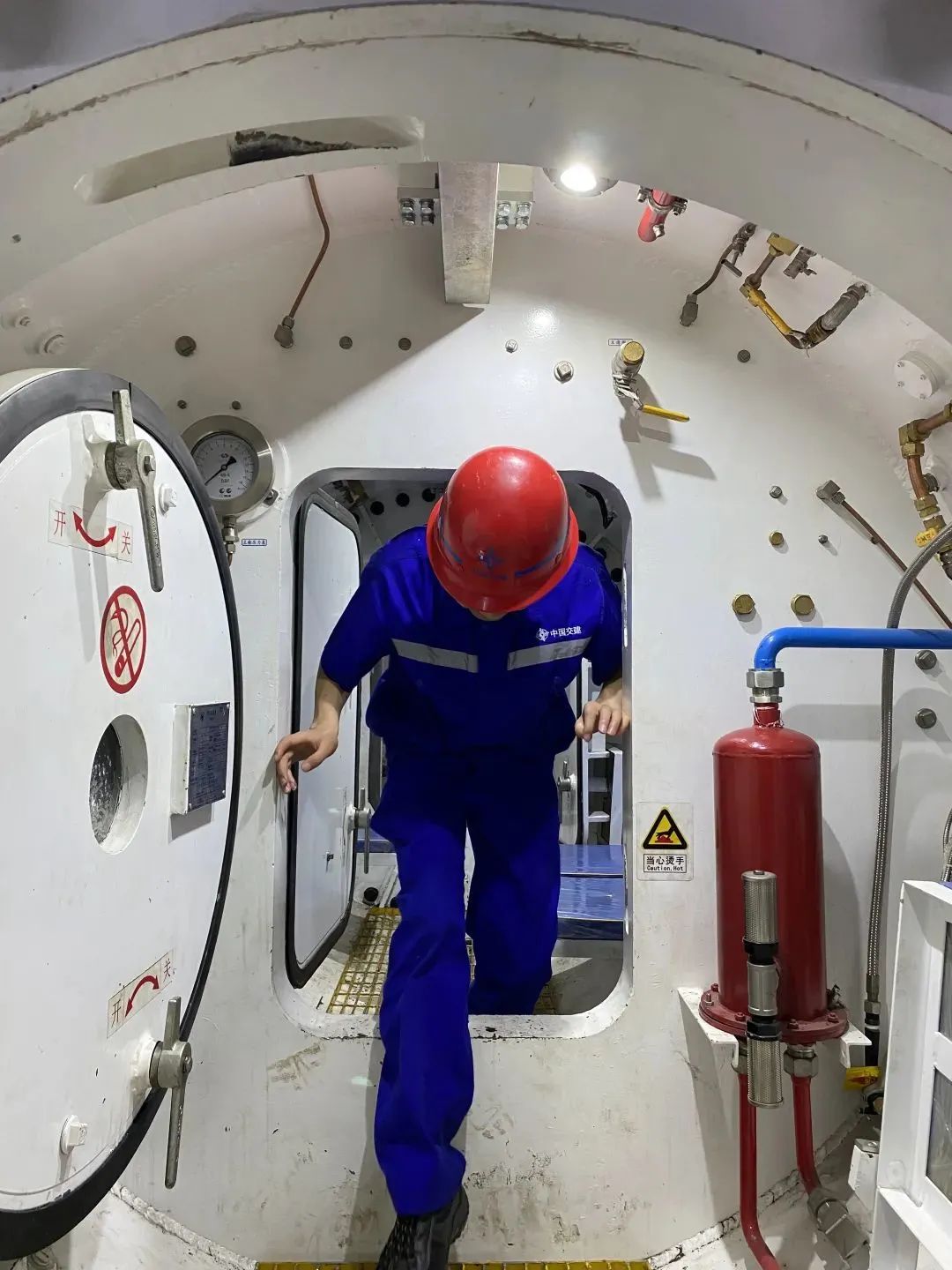 工作人员进入气泡舱检修刀头时