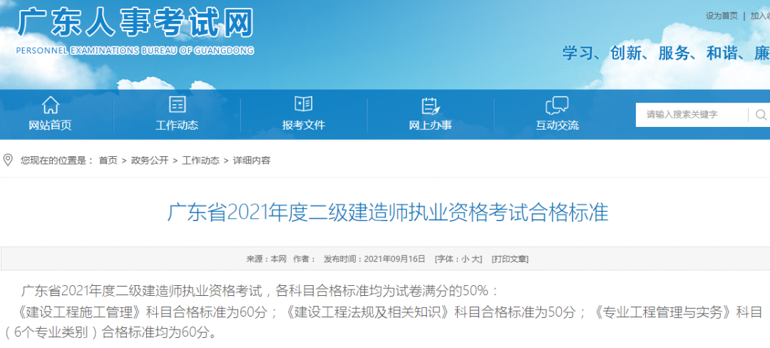 广东省2021年度二级建造师执业资格考试,各科目合格标准均为试卷满分的50%: