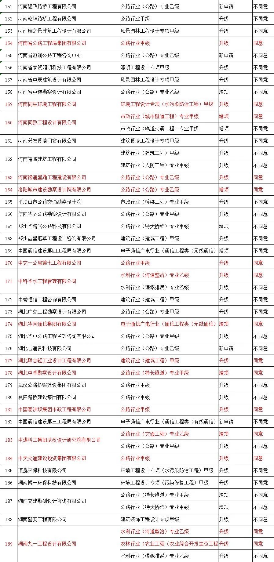 | 184 | 武汉公路桥梁建设集团有限公司 | 公路工程施工总承包特级 | 升级 | 不同意 |