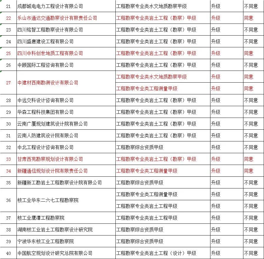 | 40 | 山西华陆建设工程有限公司 | 矿山工程施工总承包壹级 | 升级 | 不同意 |