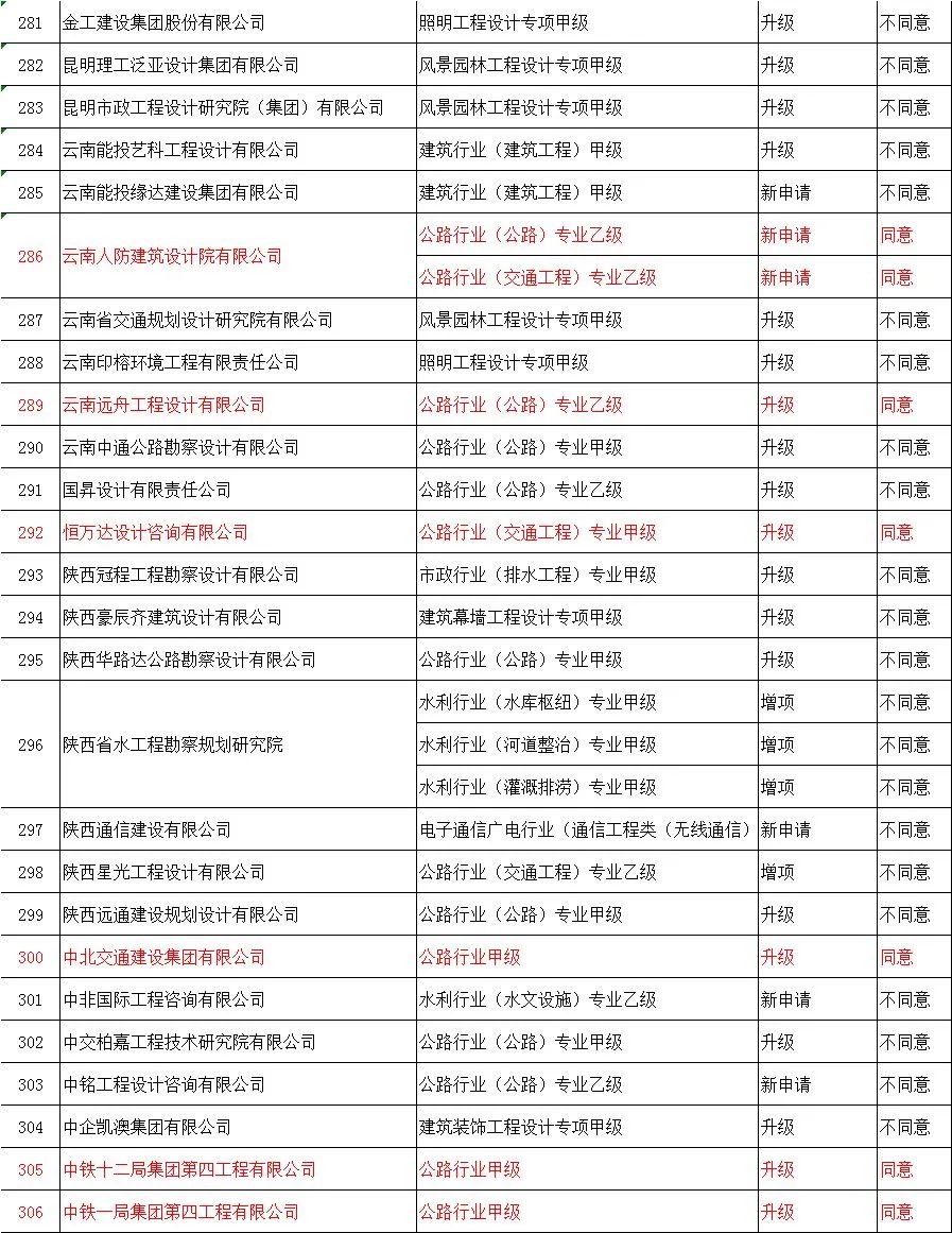 | 296 | 文山州路桥有限责任公司 | 公路工程施工总承包壹级 | 升级 | 同意 |