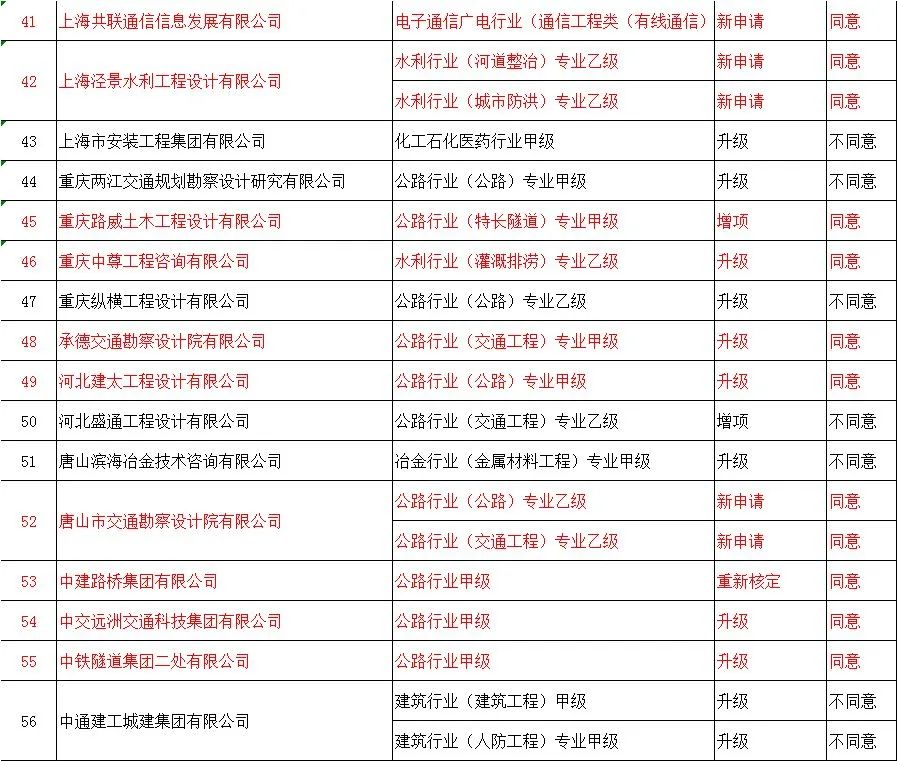 | 16 | 中交路桥建设有限公司 | 钢结构工程专业承包壹级 | 升级 | 不同意 |