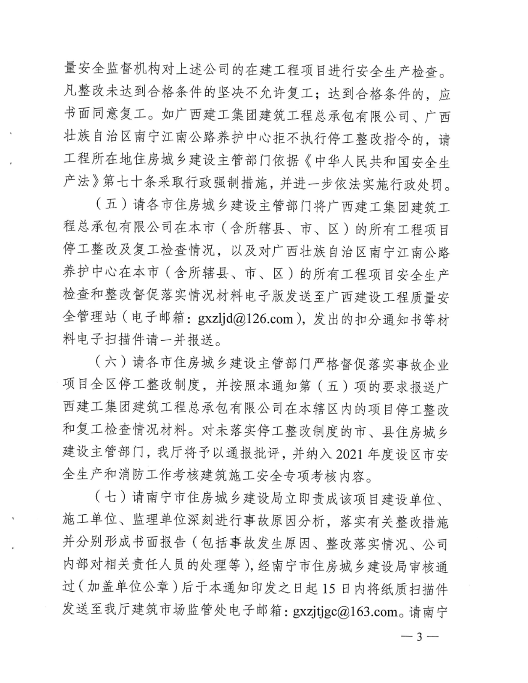 南宁市住房和城乡建设局转发自治区住房城乡建设厅关于责令广西建工集团建筑工程总承包有限公司全区在建房建市政工程立即停工整改的通知