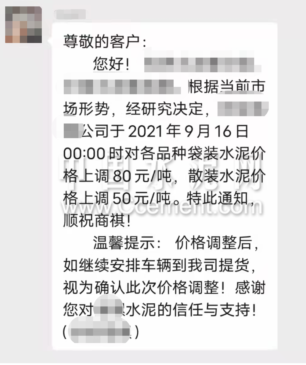 据市场反馈,进入九月传统旺季,市场需求向好,加之周边地区熟料及水泥价格大幅上调带动。