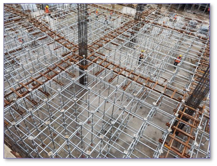 由于杆件尺寸采用固定模数,架体杆件的间距、步距均匀,横杆、立杆真正做到“横平竖直”。