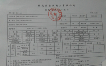 混凝土浇筑过程中及时检查混凝土配合比资料,并现场进行塌落度实验。