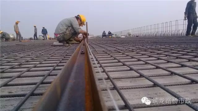 基本同设立同设立振捣梁轨道方式进行。标高带浇筑完毕后,在同一里程桩号标高带顶带线调整钢筋网的平面位置及顶面距拉线垂直距离,将钢筋网与预埋保护层钢筋点焊连接牢固。