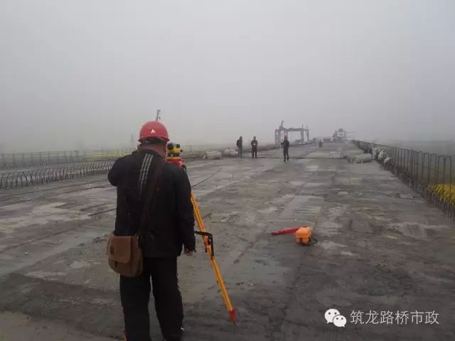 施工前由测量班复测桥面中心线、桥面宽度、泄水管位置和桥面板高程,根据桥纵向里程桩号按五米为一个断面(半幅一个断面平均布设三个点)实施测量。