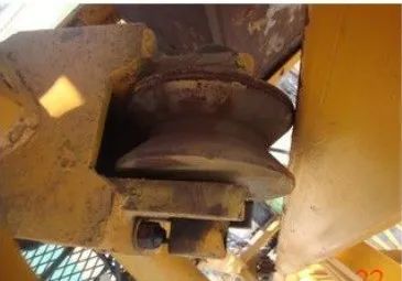 (3)经常外拉斜吊钢丝绳与硬物碰撞磨损出现毛刺。