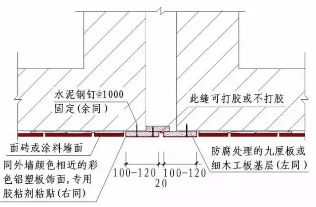 3)石材墙面设计要求打明胶时,板缝开三角槽缝或开小凹槽施工。