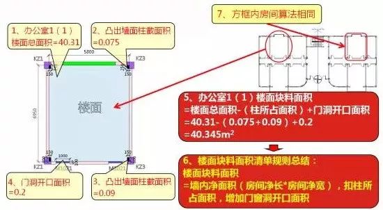 刚才地面抹灰面积是40.31,现在地面块料面积是40.345,如果说扣了柱子所占面积,应该比40.31小才对,怎么会大呢?