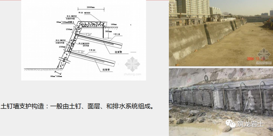 (4)土钉锚杆;(5)土钉布置形式;(6)网片钢筋;(7)喷射混凝土强度等级;(8)喷射混凝土厚度;(9)坡顶混凝土。1、土钉采用抗拉试验检测承载力,同一条件下,试验数量不宜少于土钉总数的1%,且不应少于根3根;2、墙面喷射混凝土厚度应采用钻孔检测,钻孔数宜每100㎡墙面积一组,每组不应少于3点。是一种设置于钻孔内、端部伸入稳定土层中的钢筋或钢绞线与孔内注浆体组成的受拉杆体,它一端与工程构筑物相连,另一端锚固在土层中,通常对其施加预应力,以承受由土压力、水压力或风荷载等所产生的拉力,用以维护构筑物的稳定。