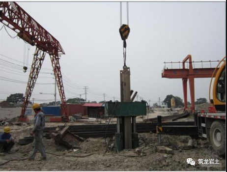 3、型钢插入一般采用自重下沉法,即由吊机从型钢顶部起吊,使型钢保持垂直,对准定位卡模就位,再松弛吊绳让工字钢稳步、均匀下沉至设计标高。当型钢自重有继续下沉可能时,在水泥土搅拌桩顶上设置止滑措施。当型钢自重下沉达不到设计标高时,可采用机械加压的方法使之达到下沉标高。4、型钢下沉的垂直度要严格保证,可采用在桩机上吊挂垂锤和径纬仪视测相结合的方法,保证垂直度偏差不大于规定值。