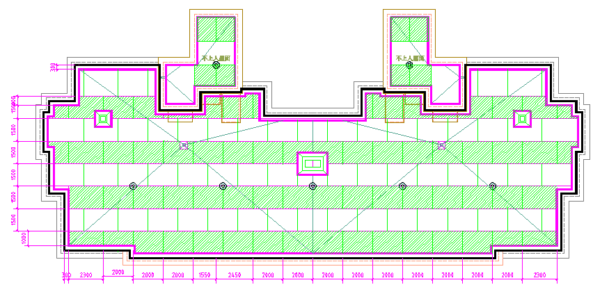 主楼屋面水落口:出屋面的雨水口在屋面防水保护层施工时候,此区域500范围内的刚性防水保护层提前施工,此区域内500范围内四周提前预埋定型化模板框(定型化模板块采用模板条制作)。使雨水口500*500区域刚性保护层与四周分开,此区域内找坡坡度按5%施工,其余区域找坡按2%向雨水口找坡施工。