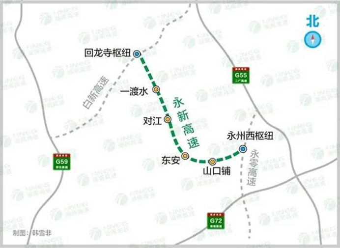 2021年10月13日,项目建设施工许可获湖南省交通运输厅批复,标志着永零高速已具备合法开工手续;10月28日,永零高速公路第一次工地会议在衡永公司驻地召开,标志着永零高速项目进入实质性施工阶段!预计将于2023年竣工。项目北起永州市冷水滩区,顺接衡永高速公路,与已建成的二广、泉南高速公路相交、与拟建的永清高速相交,往南经东安县、零陵区,与规划的零道高速公路对接。