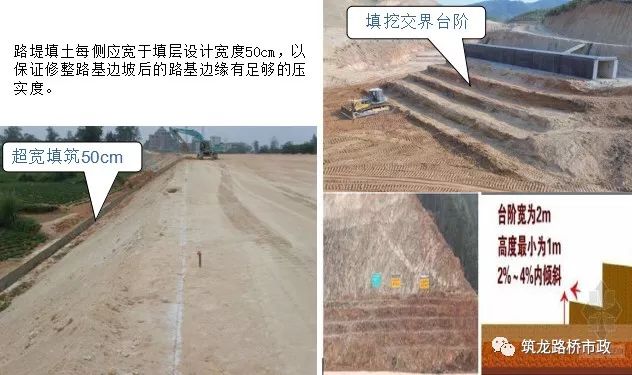 填筑时,必须从低处往高处分层摊铺碾压,特别要注意填、挖交界处的拼接,碾压要做到密实无拼痕。