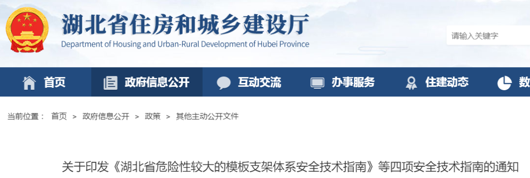 2021年6月3日,湖北省住建厅发布了《关于印发《湖北省危险性较大的模板支架体系安全技术指南》等四项安全技术指南的通知》,提出: