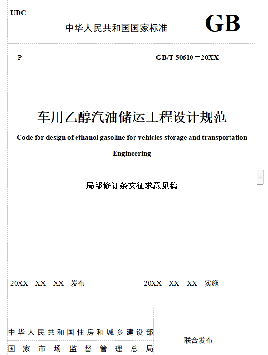 《车用乙醇汽油储运工程设计规范(局部修订条文征求意见稿)》