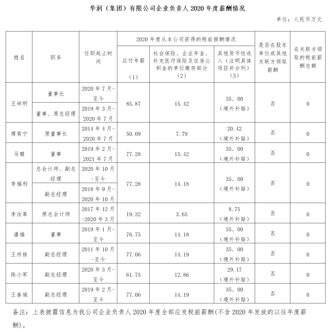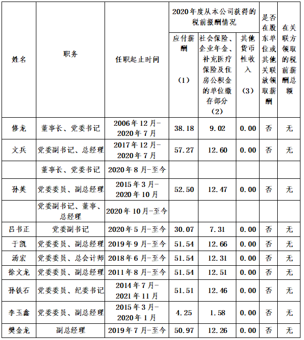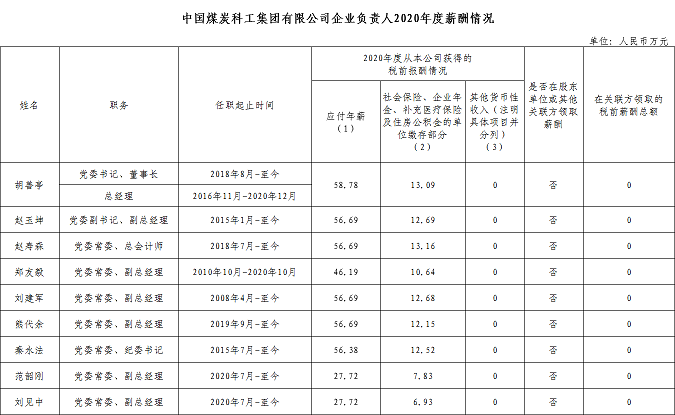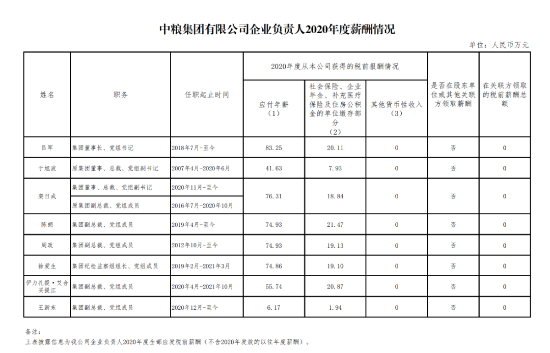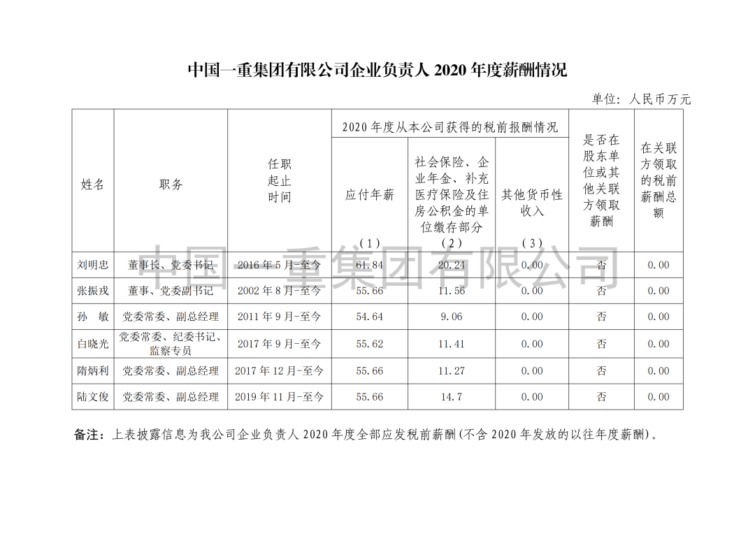 注:如有中央企业一把手在2020年内发生人事变更,该表优先选取2020年内在职时间较长人员。如需了解各中央企业所有负责人2020年度薪酬情况请在下方查看。