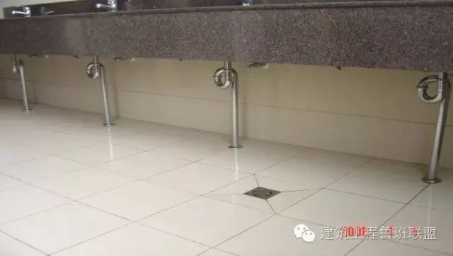 卫生间器具、蹲、坐式便器、小便斗、开关、插座、洗脸台、地漏、拖把池等,必须与装饰密切配合,共同策划,绝对不能各行其是、没有规律。地砖、墙砖的排列,与器具的安装标高方位共同考虑,形成共同策划图,然后各自按确定的标高方位进行施工,才能达到美观的效果,这也是极能制造亮点,总结质量特点的地方,一定要用心策划和施工。