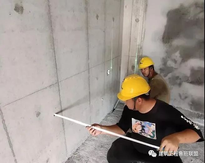 1、基层处理(砼墙面打磨、涂刷界面剂)、四周弹线定位:墙体表面应平整顺直,按照“一户一验”要求对每户进行检查方正性检查,包括铝膜施工免抹灰墙面,整体垂平度偏差不应大于4mm。基层砼墙面需要打磨消除表面浮浆、油脂,完成后涂刷墙体界面剂防止空气水分等渗透,有效保障材料之间粘接度,起到的是保障装饰的作用。