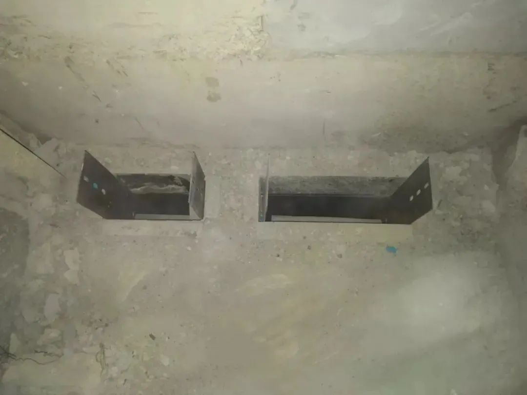 拆模之后,清理自攻钉和预埋件里面硬质泡沫板,根据层高定做桥架桥架一半长度,连接片连接固定。