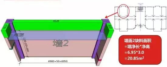 计算墙2块料面积: